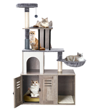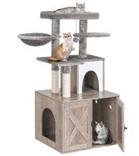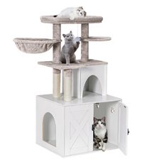 Mounting Type: No【All-in-one Cat Tree House】: Gather everything your cat needs in one stylish place: eating, playing, resting, answer nature’s call, store cat supplies...The waterproof and scratch-resistant surface makes it easy to clean and maintain. The bottom litter box design hides the litter tray, keeping the room tidy. Upgrade your cat's lifestyle and home decor today!